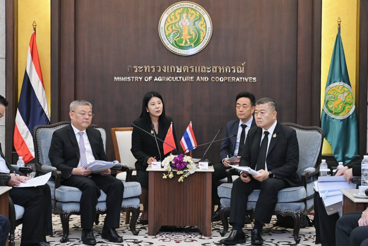วันพุธที่ 22 เมษายน 2569 เวลา 10.00 น. สัตวแพทย์หญิงวนิดา แจ้งประจักษ์ ผู้อำนวยการกองความร่วมมือด้านการปศุสัตว์ระหว่างประเทศ มอบหมายให้ นางสาวพจณา สากระแสร์ นายสัตวแพทย์ชำนาญการพิเศษ และนางสาวสุพิชชา เซ็งแซ่ นายสัตวแพทย์ชำนาญการ เป็นผู้แทนเข้าร่วมการหารืออย่างเป็นทางการระหว่างนายวิณะโรจน์ ทรัพย์ส่งสุข ปลัดกระทรวงเกษตรและสหกรณ์ และนายยอู๋ เฮ่า (Mr. Wu Hao) รองนายกเทศมนตรีนครเฉิงตู มณฑลเสฉวน สาธารณรัฐประชาชนจีน ณ ห้องประชุม 112 กระทรวงเกษตรและสหกรณ์เพื่อหารือแนวทางเสริมสร้างความร่วมมือด้านการเกษตรและปศุสัตว์ระหว่างไทย–จีน