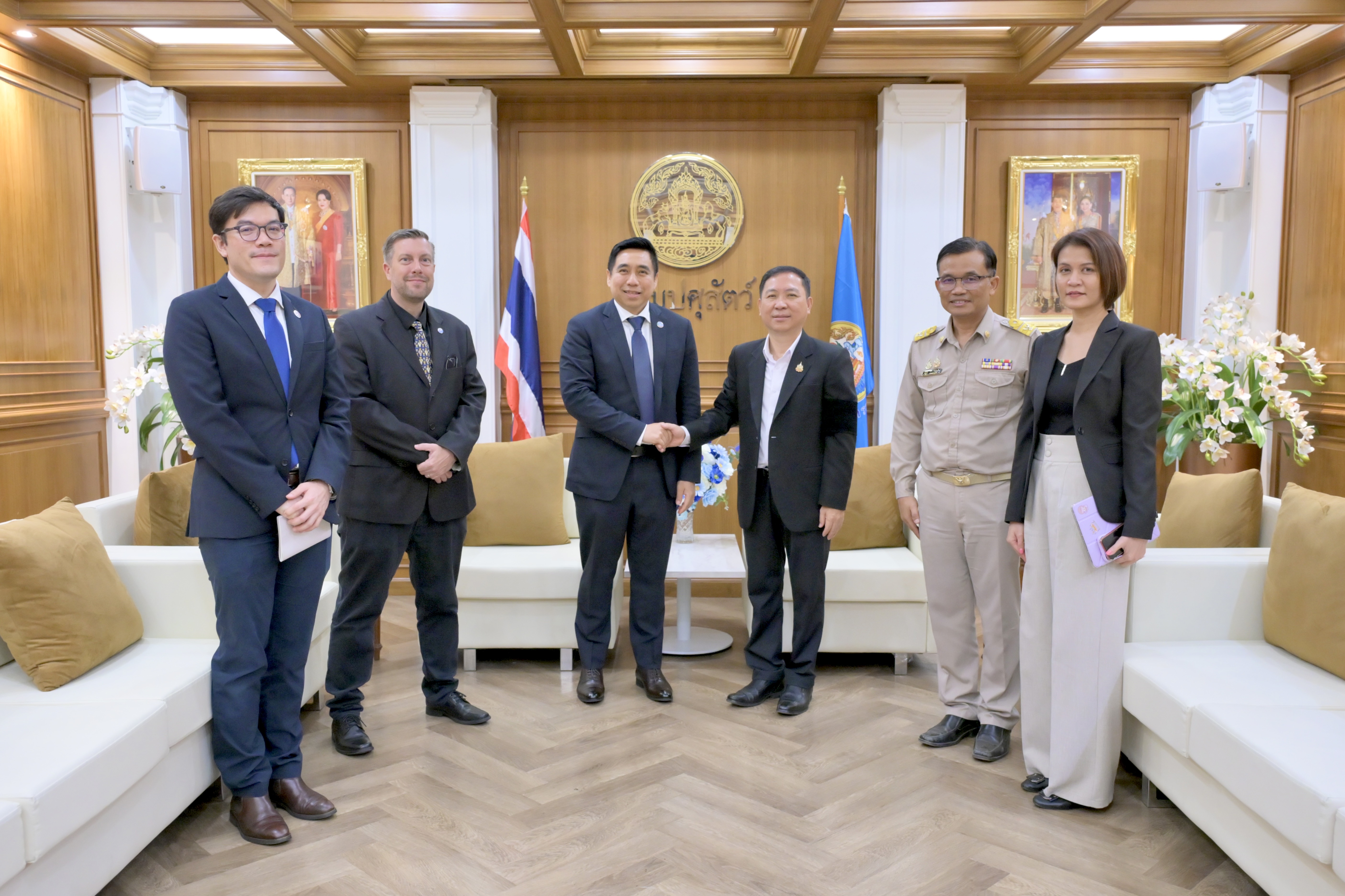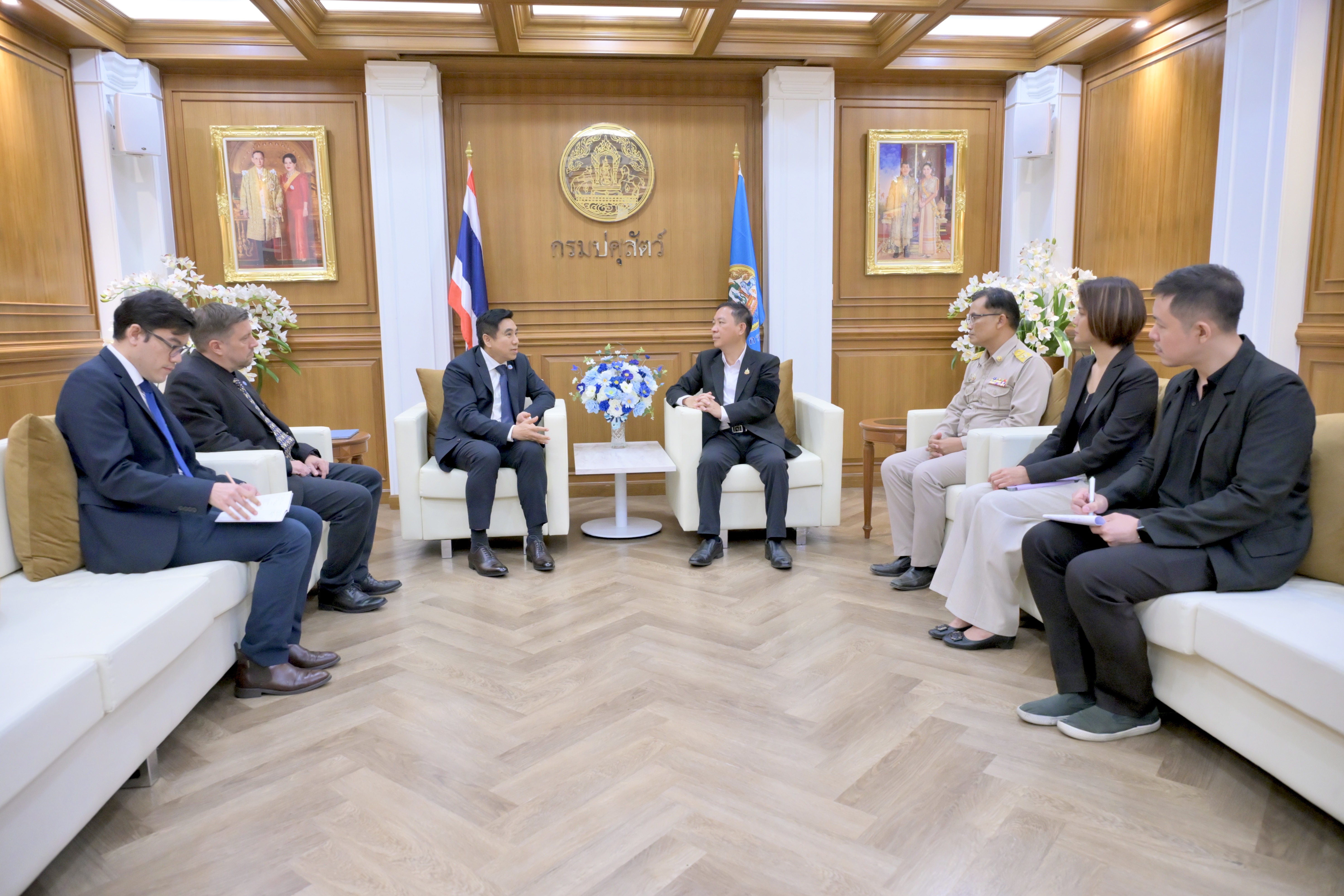ที่ประชุมได้หารือความร่วมมือกับกรมปศุสัตว์ ด้านการยกระดับมาตรฐานสุขภาพสัตว์ การลดการใช้ยาปฏิชีวนะในฟาร์มปศุสัตว์ และการเข้าร่วมกรอบความร่วมมือเพื่อการพัฒนาการปศุสัตว์และควบคุมป้องกันโรคระบาดสัตว์ข้ามแดน ทั้งนี้ เพื่อความปลอดภัยทางอาหารและการปศุสัตว์ที่ยั่งยืนต่อไป