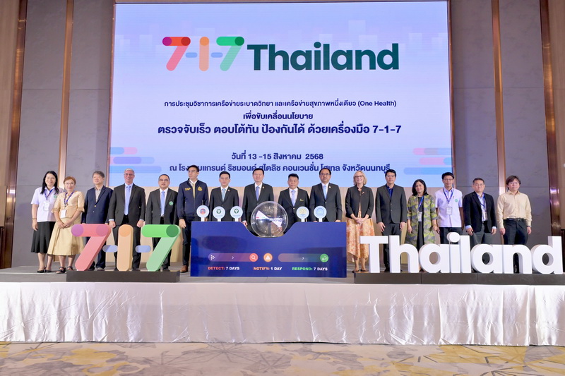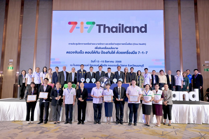 วันที่ 13 สิงหาคม 2568 เวลา 09.00 น. นายสัตวแพทย์สมชวน รัตนมังคลานนท์ อธิบดีกรมปศุสัตว์ มอบหมายให้นายสัตวแพทย์บุญญกฤช ปิ่นประสงค์ ร่วมประชุมวิชาการเครือข่ายระบาดวิทยา และเครือข่ายสุขภาพหนึ่งเดียว (One Health) เพื่อขับเคลื่อนนโยบาย ตรวจจับเร็ว ตอบโต้ทัน ป้องกันได้ ด้วยเครื่องมือ 7-1-7 โดยมีนายแพทย์ภาณุมาศ ญาณเวทย์สกุล อธิบดีกรมควบคุมโรค เป็นประธาน และมีนายแพทย์ ดิเรก ขำแป้น รองอธิบดีกรมควบคุมโรคเป็นผู้กล่าวรายงาน ในการนี้นายสัตวแพทย์บุญญกฤช ปิ่นประสงค์ รองอธิบดีกรมปศุสัตว์ ยังได้ร่วมแสดงปาฐกถาแสดงวิสัยทัศน์ของกรมปศุสัตว์ในหัวข้อ “ก้าวทันโรคและภัย: วิสัยทัศน์การจัดการโรคและภัย ด้วยแนวคิดความทันเวลาและสุขภาพหนึ่งเดียว (One Health)” ร่วมกับนายแพทย์ภาณุมาศ ญาณเวทย์สกุล อธิบดีกรมควบคุมโรค นายแพทย์วัชรพงษ์ คำหล้า รองอธิบดีกรมวิทยาศาสตร์การแพทย์ นายธนัญชัย วรรณสุข รองอธิบดีกรมควบคุมมลพิษ นายสัตวแพทย์ภัทรพล มณีอ่อน ผู้แทนกรมอุทยานแห่งชาติ สัตว์ป่า และพันธุ์พืช Dr.Brett Petersen ศูนย์ความร่วมมือไทย – สหรัฐด้านสาธารณสุข และ Dr.Sara Klucking Regional Strategic Assistant Section สถานทูตสหรัฐอเมริกา และผู้แทนจากกองความร่วมมือด้านการปศุสัตว์ระหว่างประเทศ กรมปศุสัตว์ ซึ่งแสดงถึงการบูรณาการความร่วมมือระหว่างหน่วยงานภาครัฐ และหน่วยงานองค์กรระหว่างประเทศในระดับนานาชาติ ทั้งนี้ กรมปศุสัตว์ยังได้รับรางวัล “One Health Champion: ตรวจจับเร็ว ตอบโต้ทัน ป้องกันได้” ในเรื่องการจัดการเหตุการณ์การระบาดของโรคแอนแทรกซ์ ในจังหวัดมุกดาหาร ซึ่งสำนักงานปศุสัตว์จังหวัดมุกดาหารได้รับโล่เกียรติคุณ และสํานักงานปศุสัตว์อำเภอดอนตาล จังหวัดมุกดาหารได้รับประกาศเกียรติคุณ อันเป็นการแสดงให้เห็นถึงความร่วมมือของกรมปศุสัตว์กับหน่วยงานสาธารณสุขในพื้นที่ ตลอดจนภาคประชาชน ภาคประชาสังคมที่เกี่ยวข้องในดำเนินการควบคุมโรคได้อย่างมีประสิทธิภาพ และเป็นที่ประจักษ์
